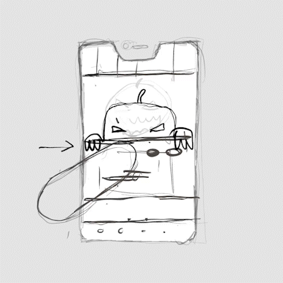 Este proyecto explora una interfaz móvil donde los usuarios recorren pequeñas animaciones para Halloween. A medida que la mano se mueve por la pantalla, los personajes comienzan a interactuar con la interfaz y cruzan el límite del dispositivo, creando una experiencia lúdica donde el contenido parece escapar del teléfono