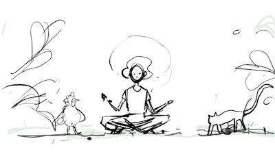El proyecto consiste en la animación de un personaje meditando, cuya relajación hace levitar el resto de los elementos a su alrededor.