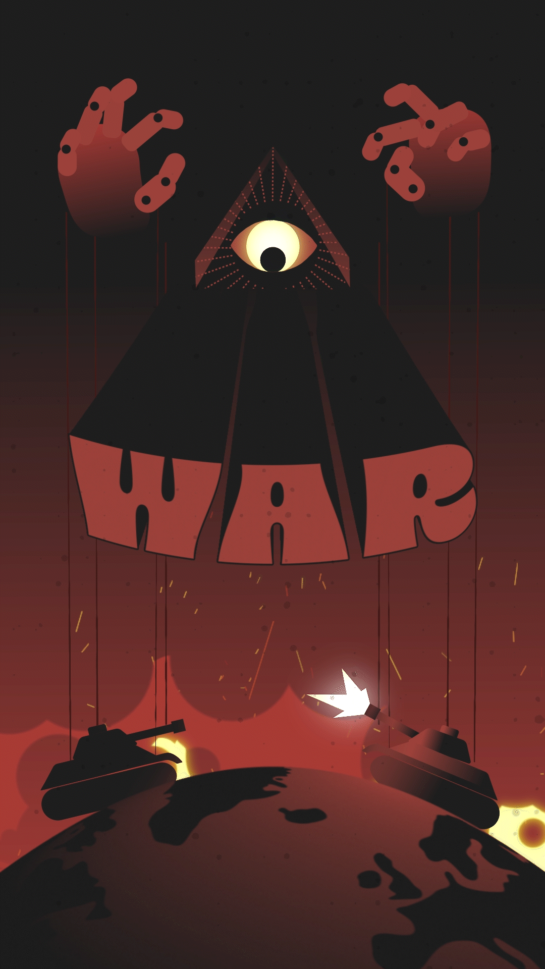 Puppet War es un proyecto de animación personal para un desafío de animación del canal #ChachoMotion, el propósito era crear una animación en 1 segundo, con una paleta de colores y una serie de restricciones, mi proyecto explora la relación entre el poder invisible y el conflicto global.